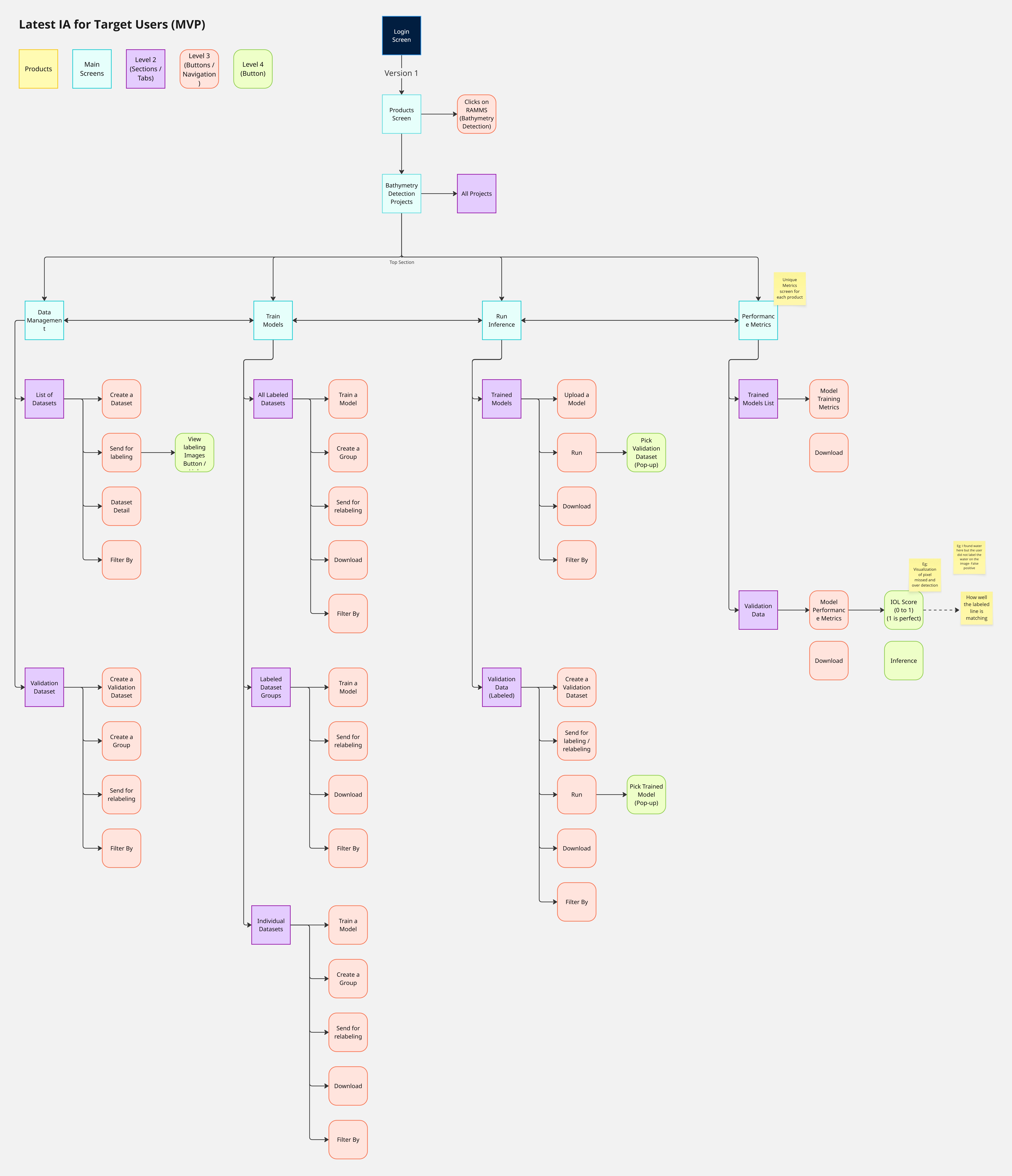The following user flow is designed from the perspective of the ML Engineer, illustrating how they manage and train a model. While the image below may be hard to read in detail, it serves as a visual representation of how I analyzed the observation notes to create the current workflow. Reach out for more details.